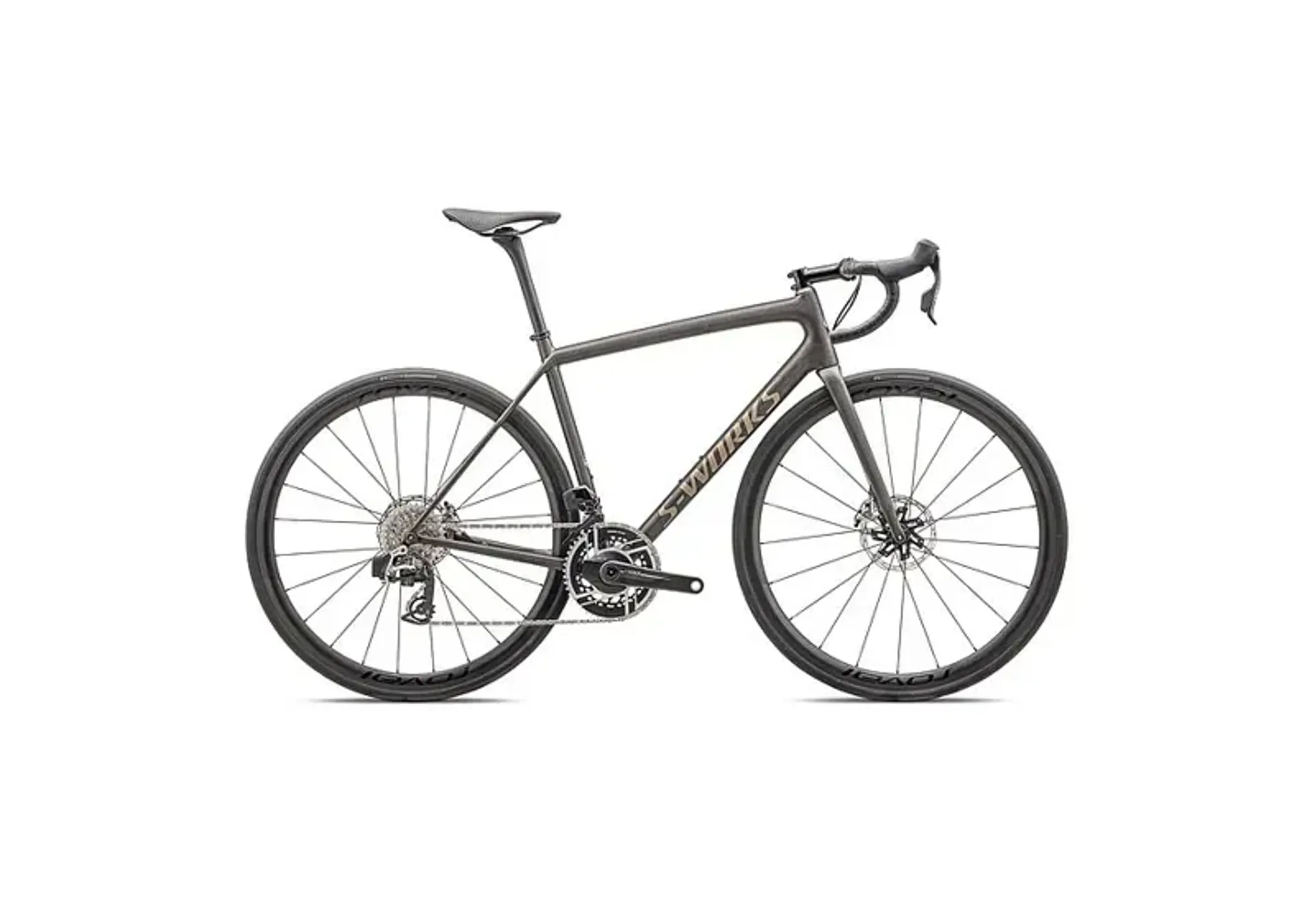 Specialized S-Works Aethos - Sram Red AXS Road Race Bike In Satin Doppio/Gunmetal Dry Brushed/Gold Pearl
