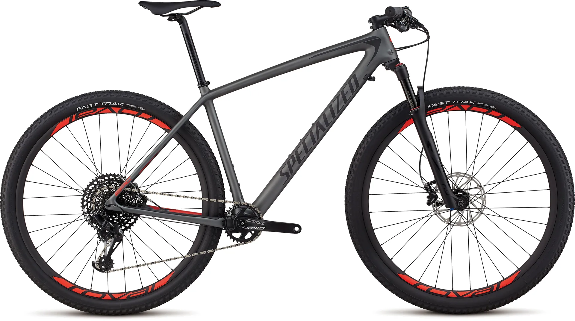 2018 Specialized Mens Epic Hardtail Expert Satin Charcoal/Black/Rocket Red from McConvey Cycles with Free Delivery to UK and Ireland on all orders over £50 and Hassle Free Returns