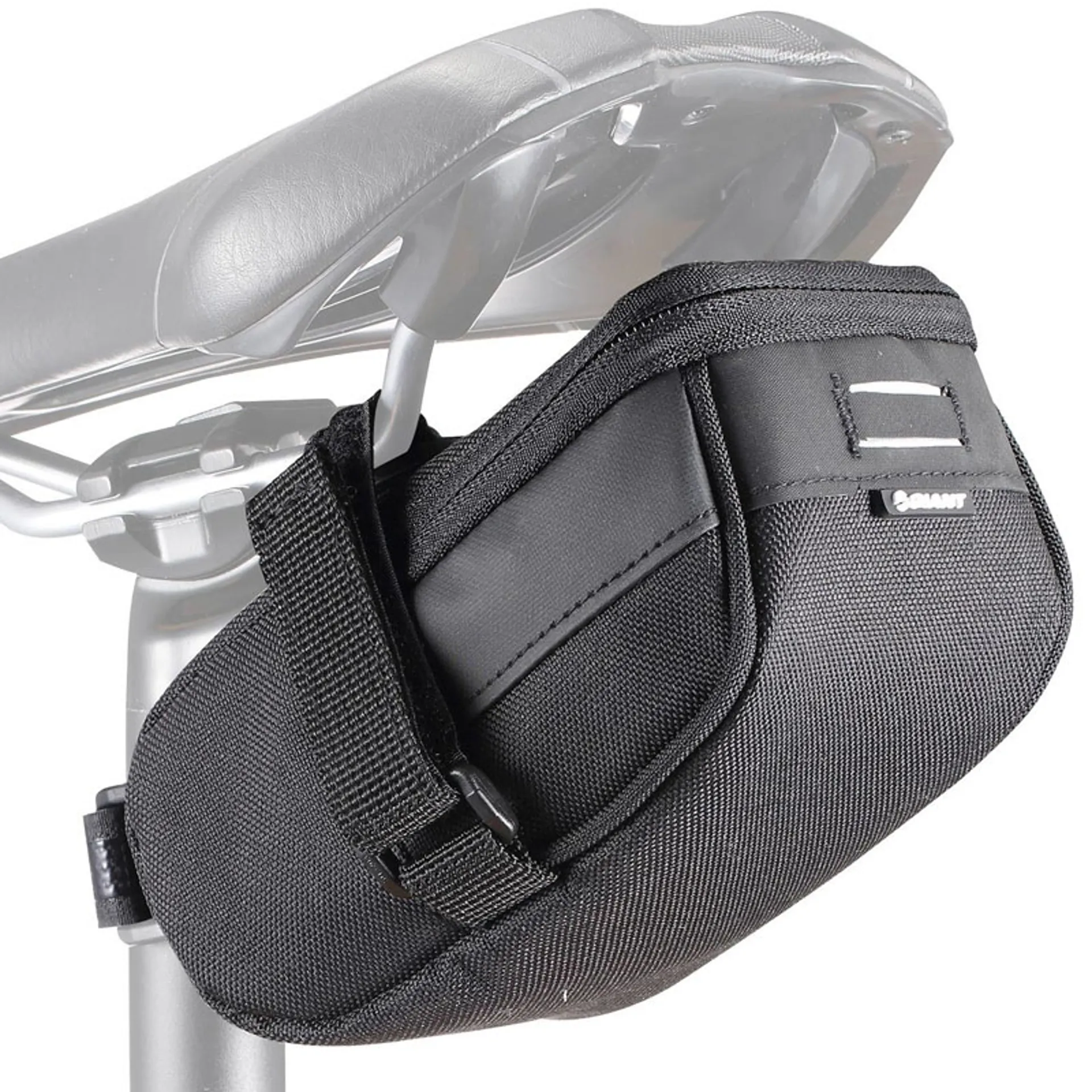 Giant Shadow ST Seat Bag's feature water resistant ProTextura™ fabric construction with a water-resistant nylon zip. A simple anti-slip hook and loop Velcro® strap fitting allows easy removal and fitting and the reflective strip offers improved low light visibility with a tail light hanger for adding your own light.